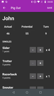 Count The Pigs is a scoreboard for the Pass The Pigs game. Use the app to record the score as you play the game with your friends.