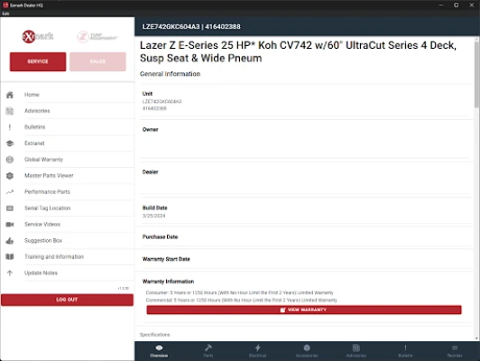 NOTE: The Exmark Dealer HQ application requires a user login to access.
