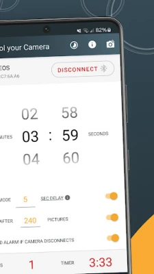 Sounds an alarm when the camera disconnects from the phone while shooting is in progress and automatically attempts to reconnect the app to the camera in order to continue shooting.