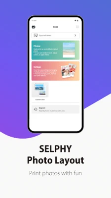 SELPHY Photo Layout is an application that allows you to create/save layouts of images to be printed with SELPHY using images stored on your smartphone or tablet.